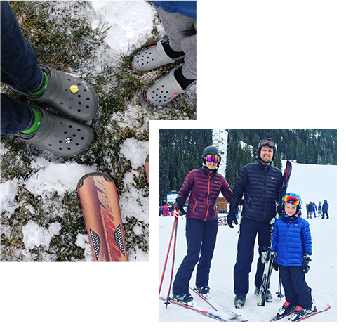 “Every winter my wife and I take our 7-year old son skiing in Colorado for a week. Between the ski boots and the cold snowy mountains, our feet will be in need of serious soothing. We all pack our warm and cozy Classic Fuzz-Lined clogs. They’re perfect for relaxing after a day of skiing or running from the condo to the hot tub.”